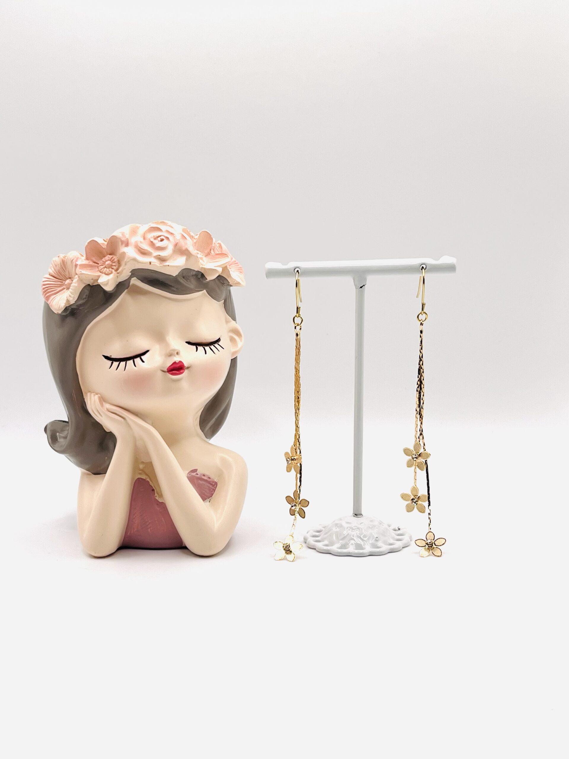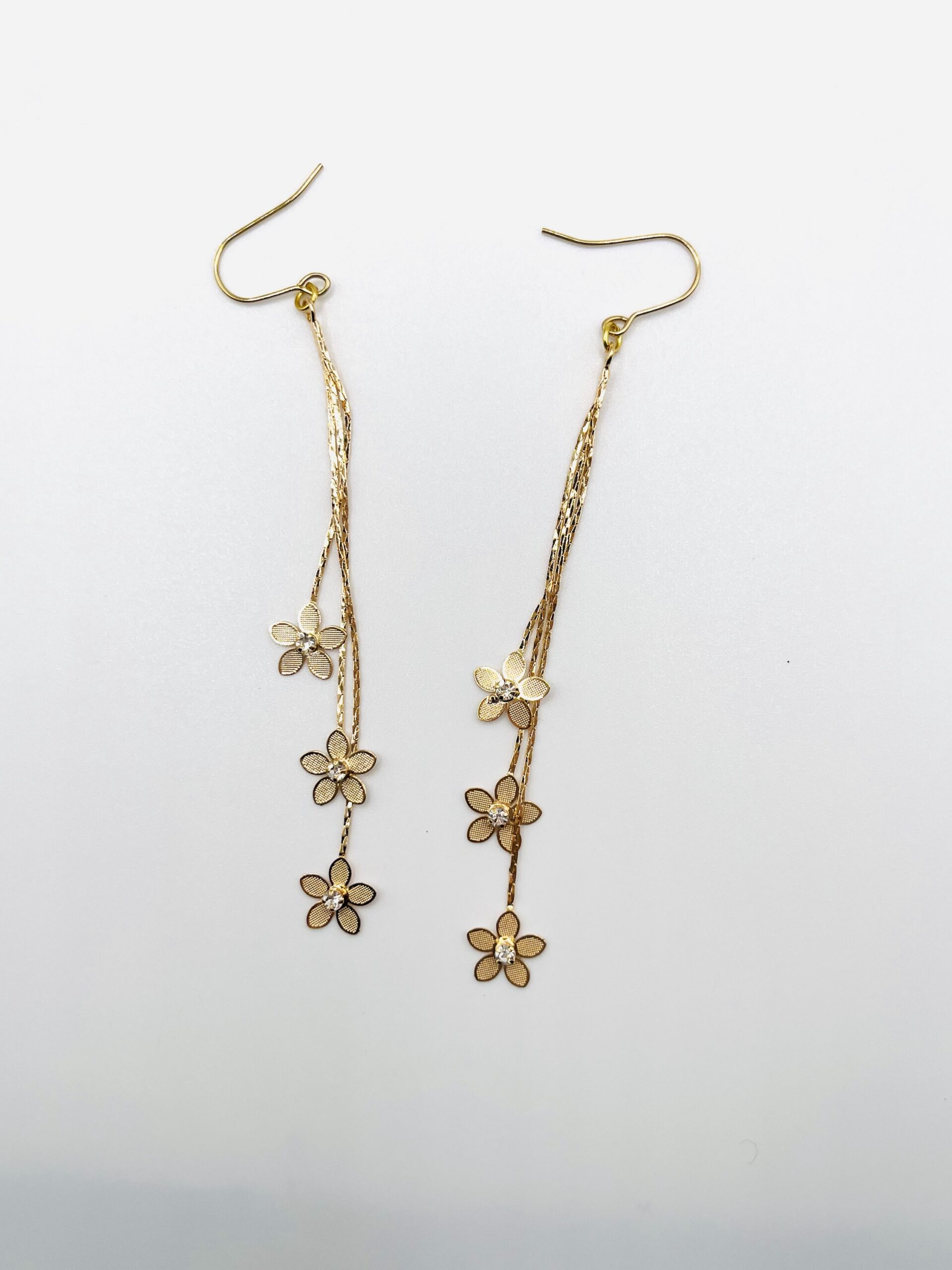 Gold colored flower tassel earrings. Hypoallergenic, nickel free gold hooks. About 4 inches long. Lightweight.