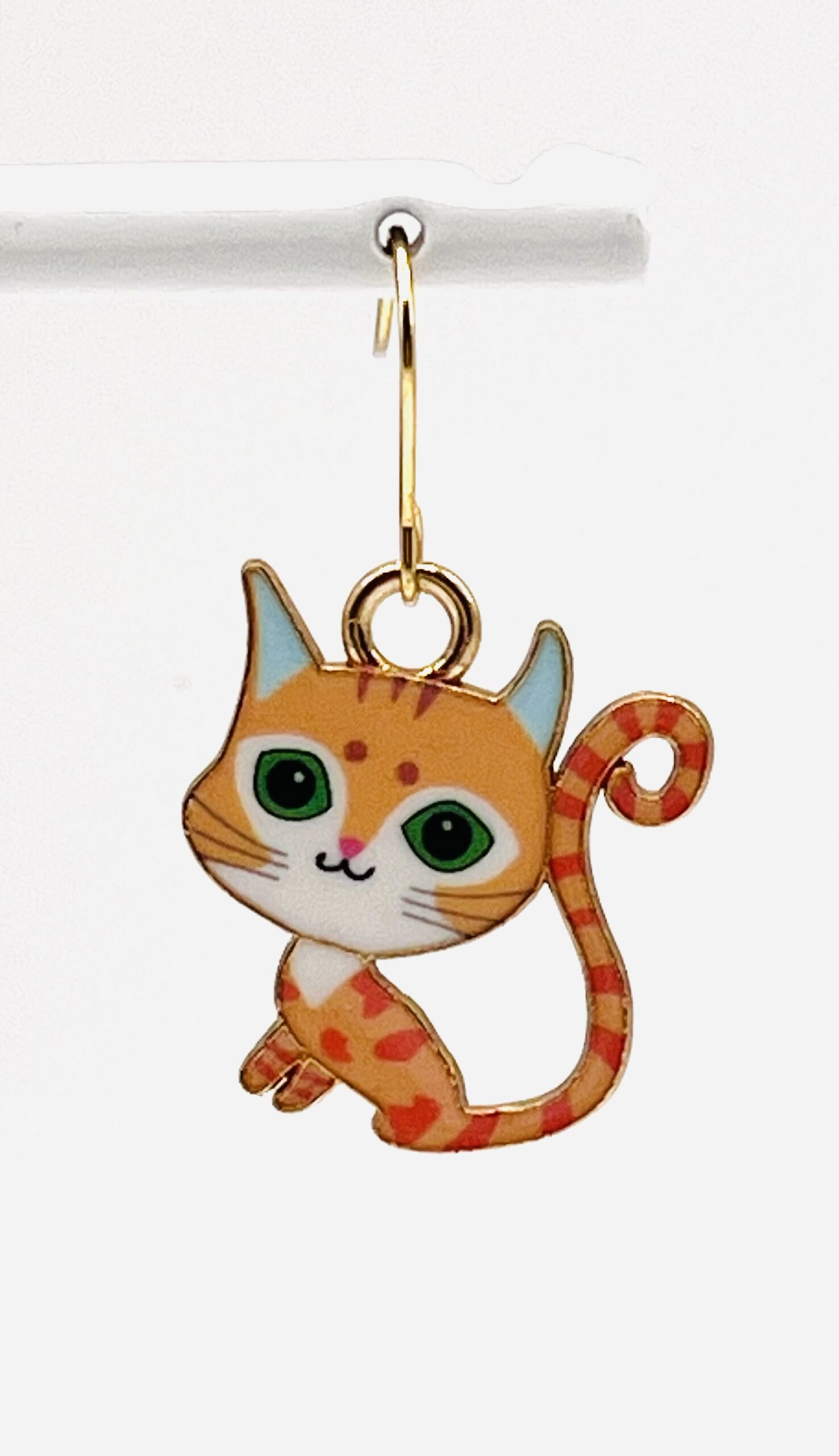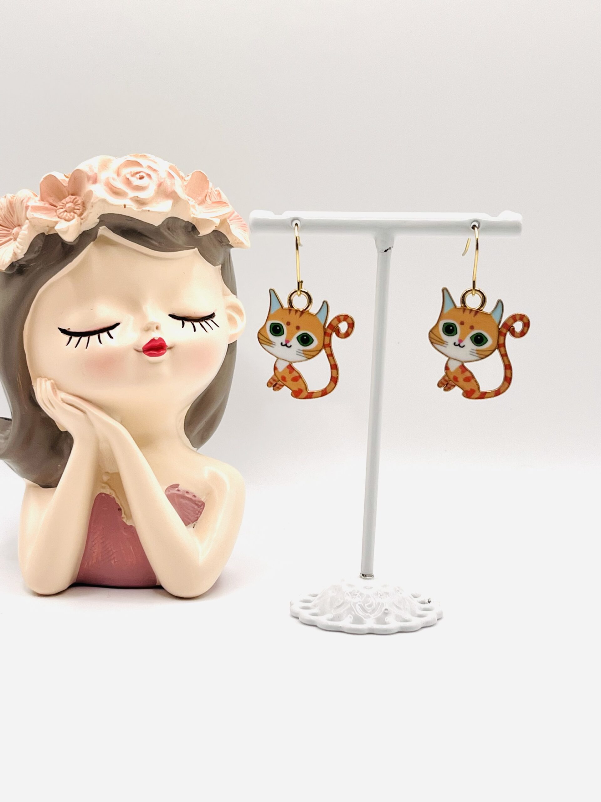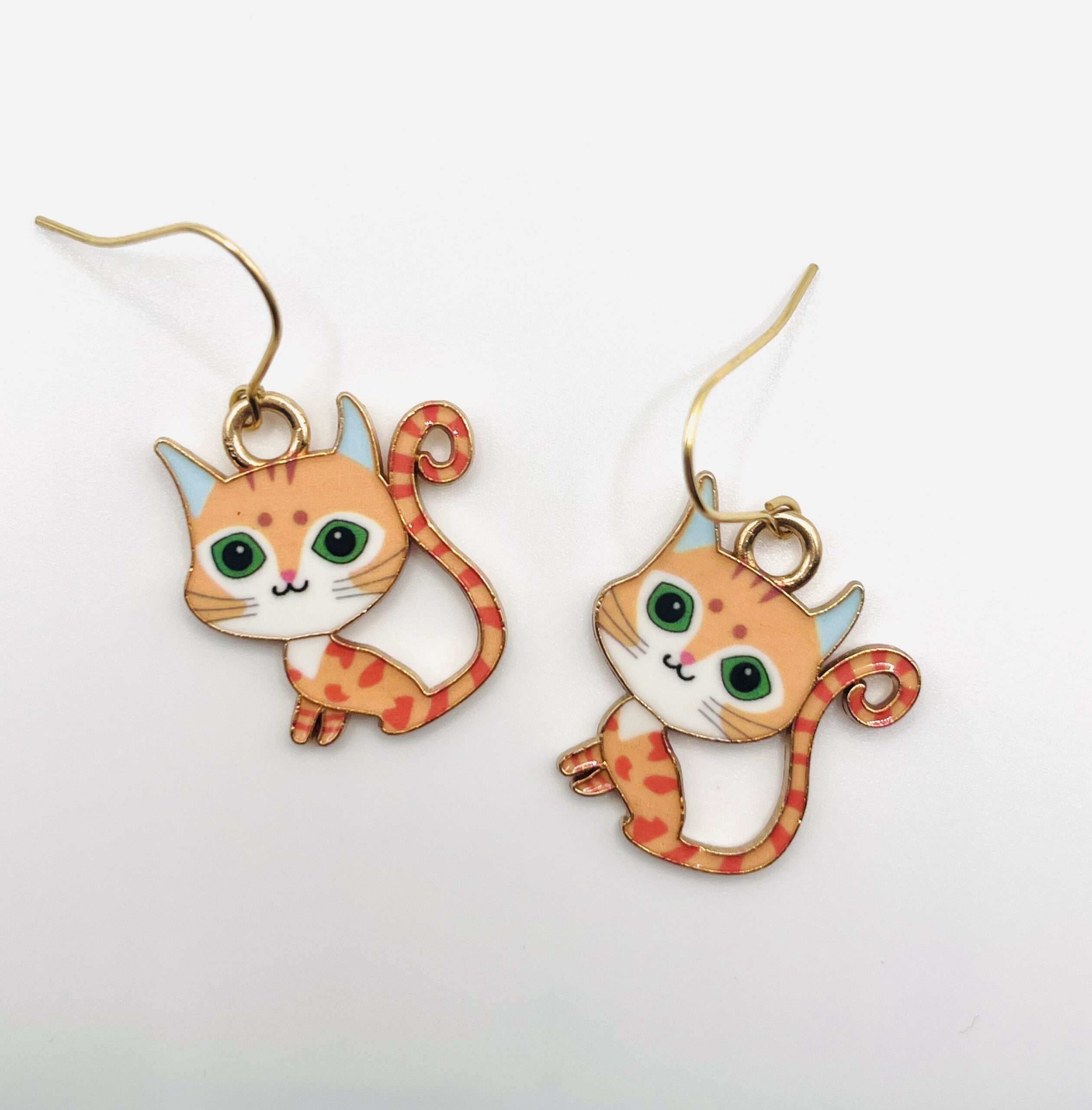 Orange cat allot earrings. Hypoallergenic, nickel free gold hooks. About 1.5 inches long. Light weight